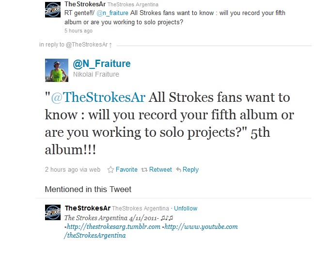 Nikolai, sempre gentil, respondeu a uma pergunta dos fãs argentinos (@TheStrokesAr ) sobre o 5º álbum no twitter:
