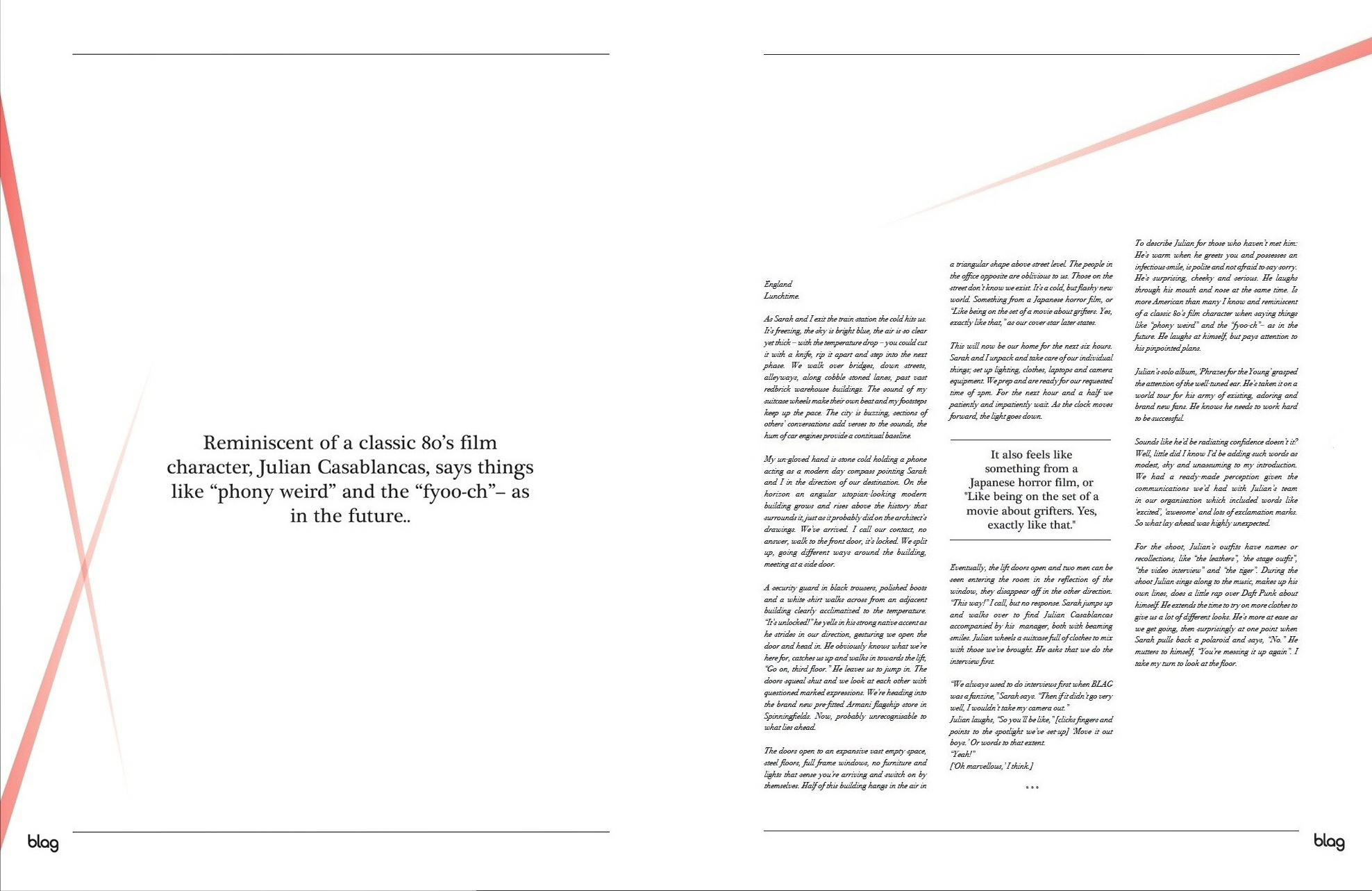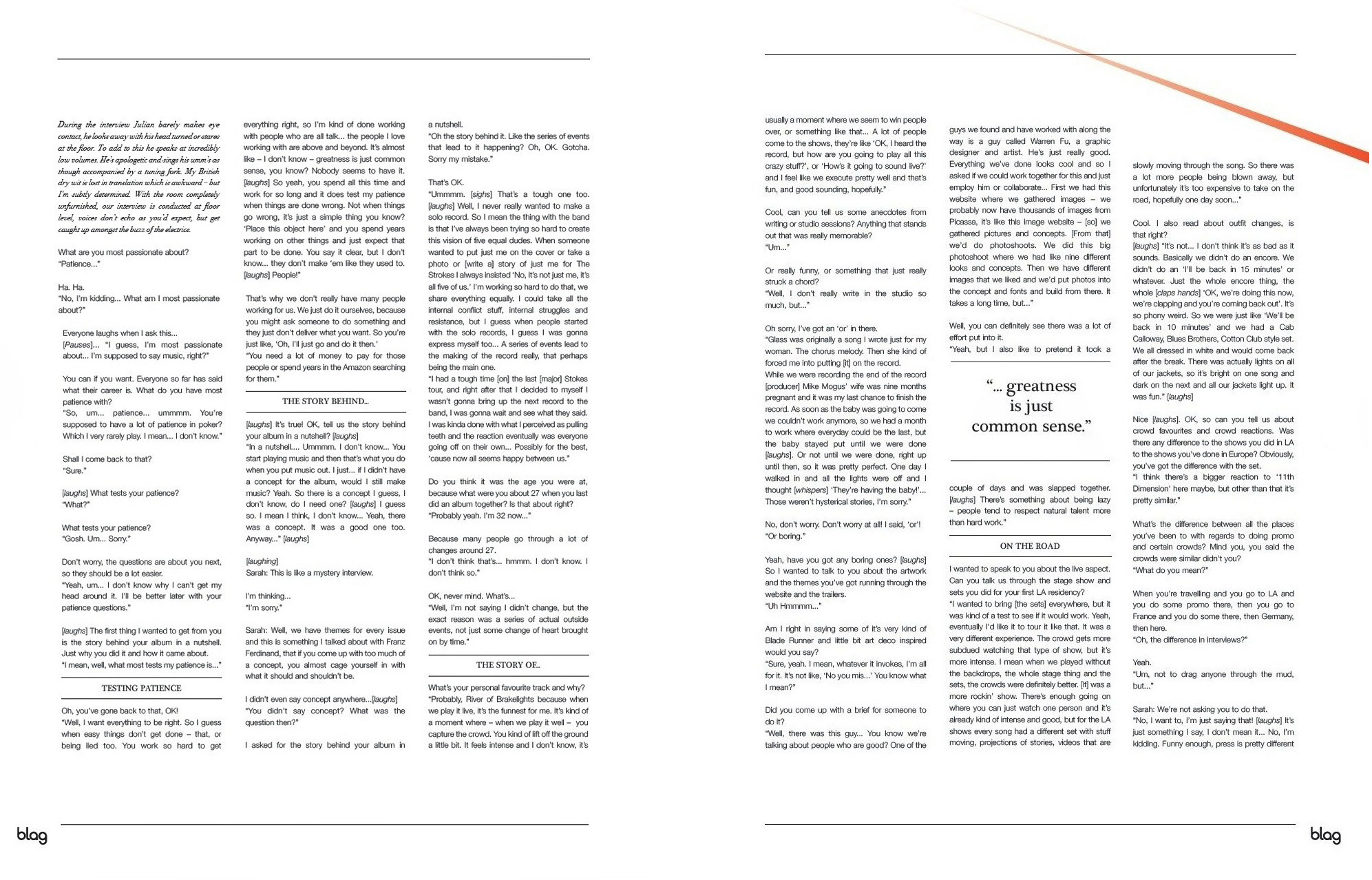 Há muito tempo, em dezembro de 2009, a Blag Magazine fez uma entrevista com Julian Casablancas. Só agora quem comprou a revista tem em mãos o seu exemplar. Tem ótimas fotos, e os scans você confere clicando em mais, aí no fim do post.