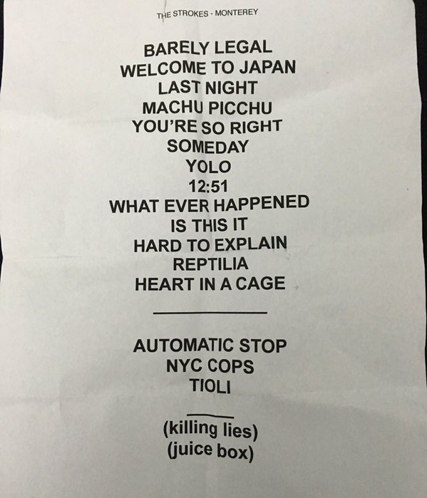 O primeiro show do ano foi Shaky Knees Festival. Em maio, Strokes se apresentaram no Big Guava e no Primavera Sound (que teve shows de Albert Hammond Jr e Julian Casablancas + The Voidz). Teve também o BST Festival, no Hyde Park em Londres. Setembro foi a vez deles se apresentarem no Landmark Music Festival . O último show do ano foi no México, em Monterrey, em dezembro.